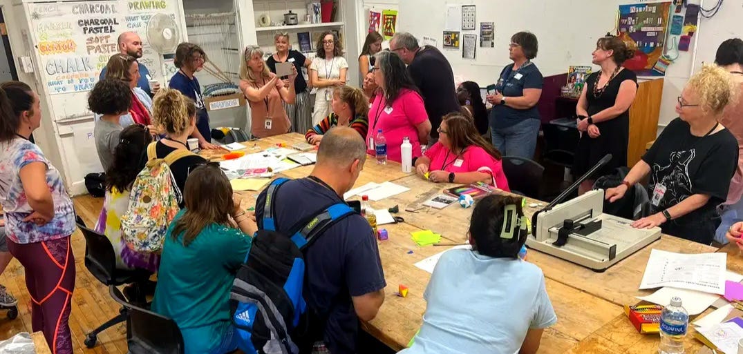 If you’re unfamiliar with the TAB Institute, it’s a week-long, intensive course dedicated to Teaching for Artistic Behavior philosophy and practice. Instructors are experienced, practicing TAB teachers. There are two strands of content, the classroom where participants learn through sharing and discussion, and the studio where participants are invited to both make art and share short art-making demonstrations for the group.