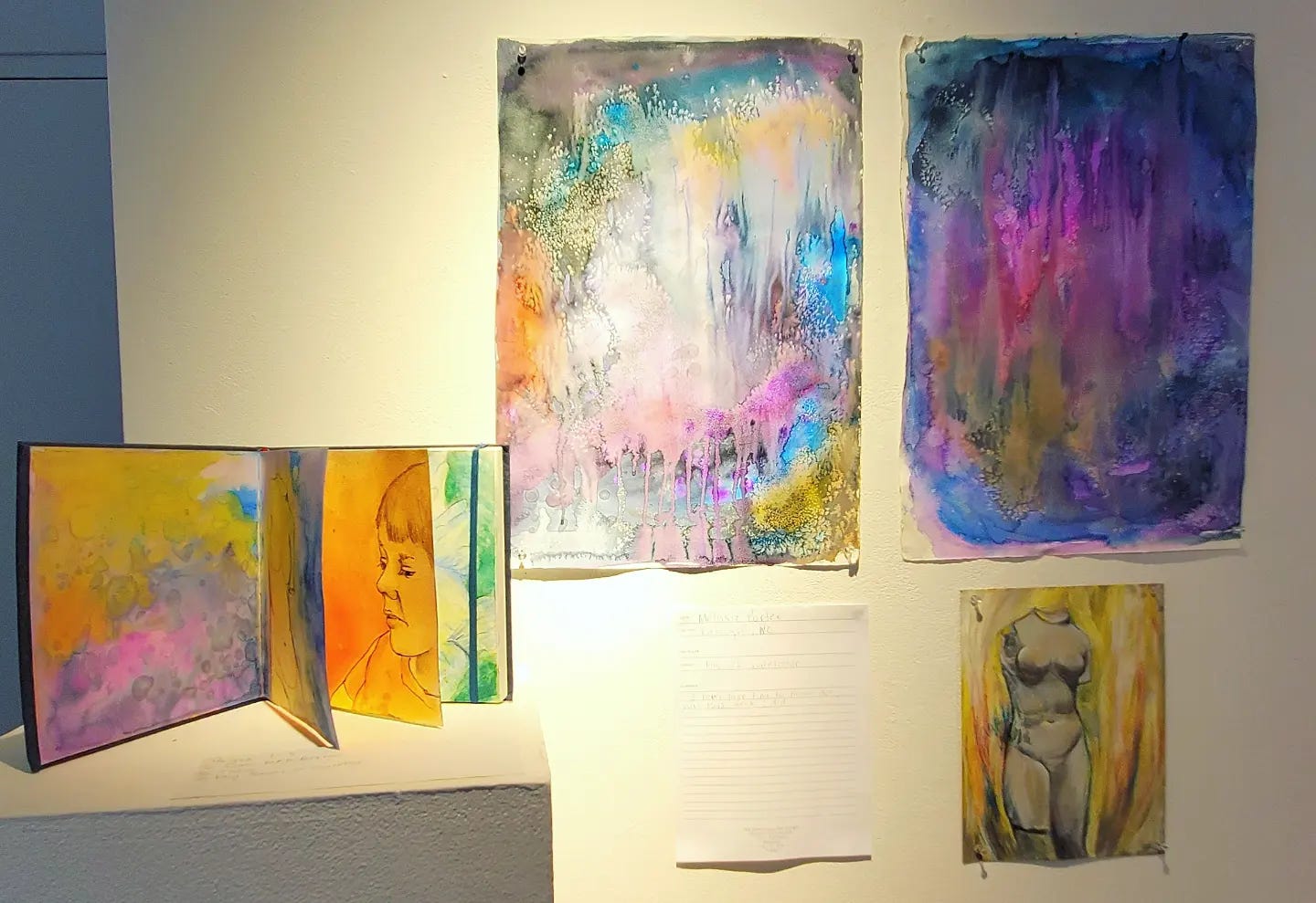 Making art is hard. Having supplies prepared, labeled, and easy to locate and access makes it less so. Short demos with inviting materials that are there, ready to use are enticing and so is the creative energy of artists hard at work on their own, unique art. The welcoming, warm space filled with artists who cared for and supported one another drew me in. I was a hesitant student, and I couldn’t resist.