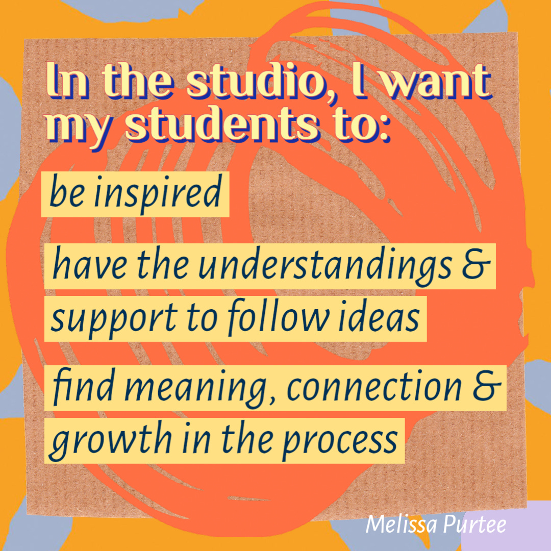 Be inspired. I want them to connect with ideas they are excited about and make art that is relevant to them. Read more about some ways I try to accomplish this here.