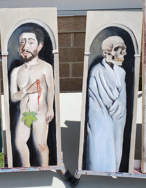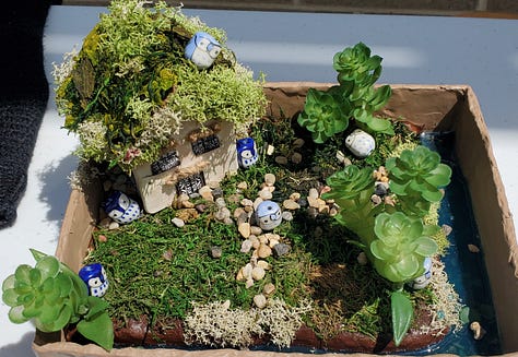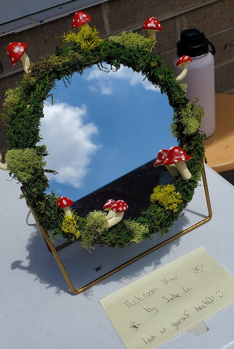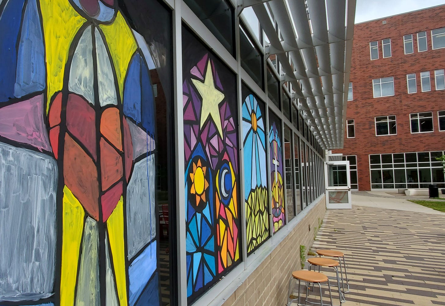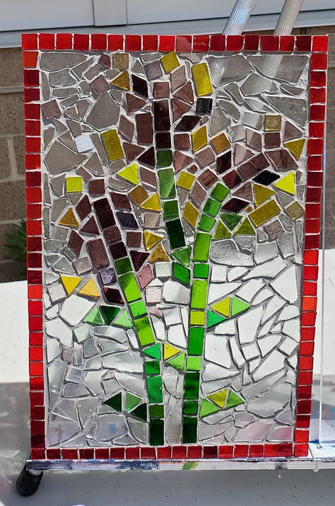 And the artwork! We had painting, sculpture, fiber arts and glass mosaic. My room faces the courtyard and has huge windows we painted like stained glass. We had a huge crowd, helped by perfect weather and the fact that we joined forces with another event.